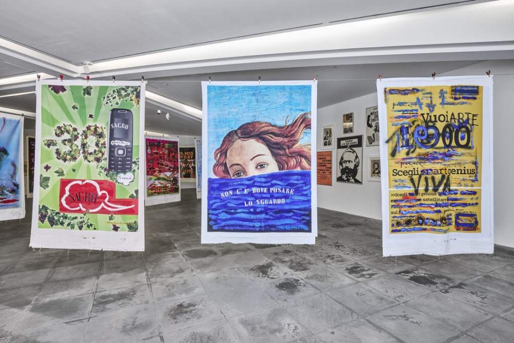 Les travaux les plus récents (2000-2012) offrent une approche hybride de la poésie, de la musique, la performance et la communication de masse tout en soulignant l’extraordinaire pouvoir de l’image. Dans la série « Città Larga », les œuvres sont créées en manipulant un type de publicité de rue commun et omniprésent : des bannières en tissu suspendues sur les réverbérations des zones urbaines. Ces publicités utilisent fréquemment des images créées selon une logique populaire qui ne s’écarte jamais des clichés les plus fatigués. L’artiste les manipule alors pour en altérer le sens ou souligner l’absurdité du rapport entre l’image et les mots. mamac-nice.org